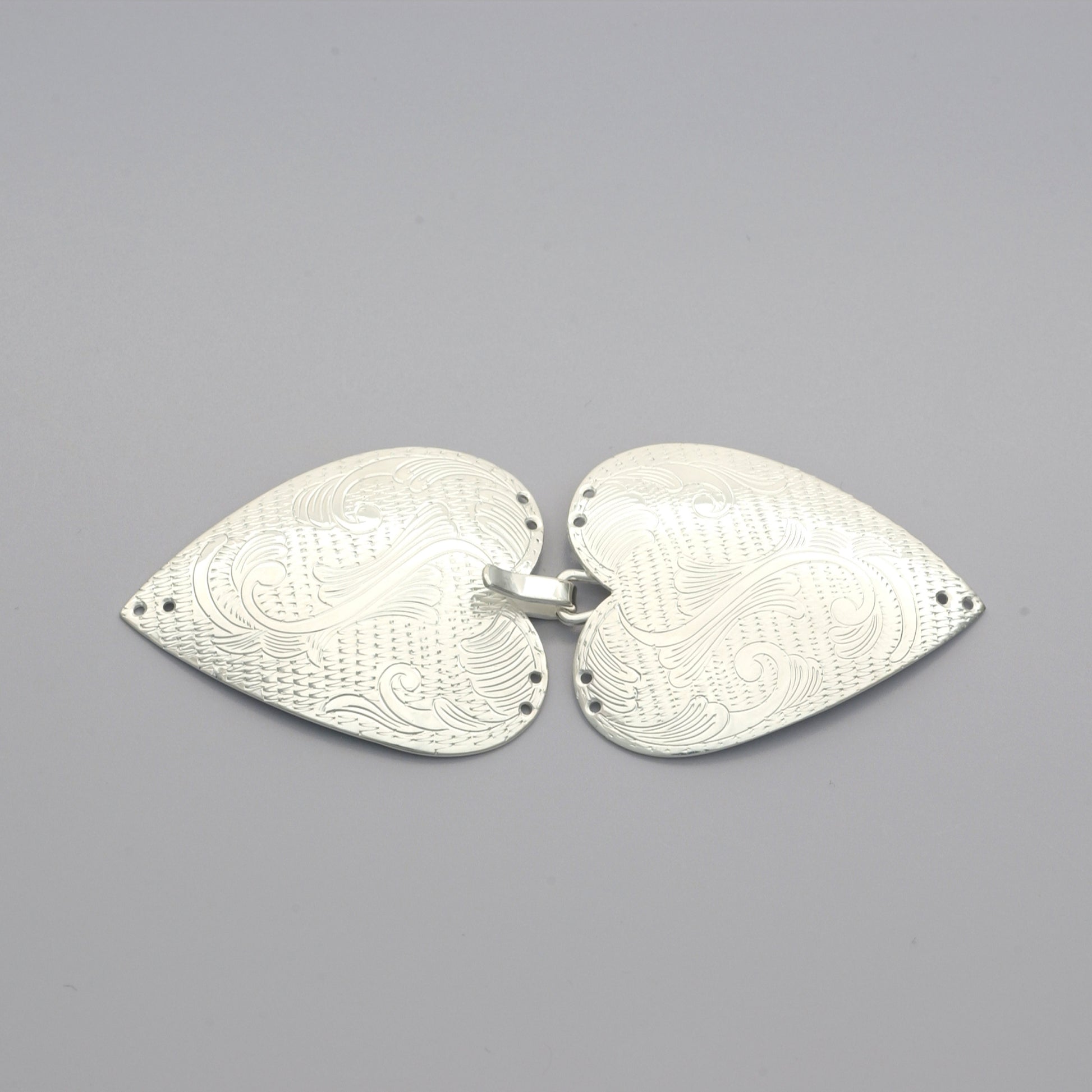 Vimme håndgravert sølvspenne fra Hasla. Til vevd belte og jakke til Åmlibunaden.