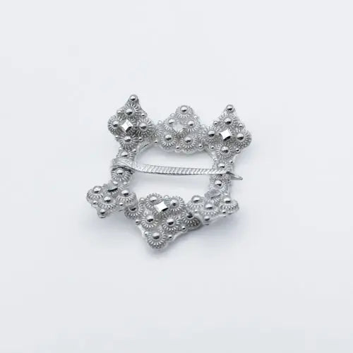 Håndlaget hornring i filigran til herrebunad fra RysstadSylv. Nål på baksiden