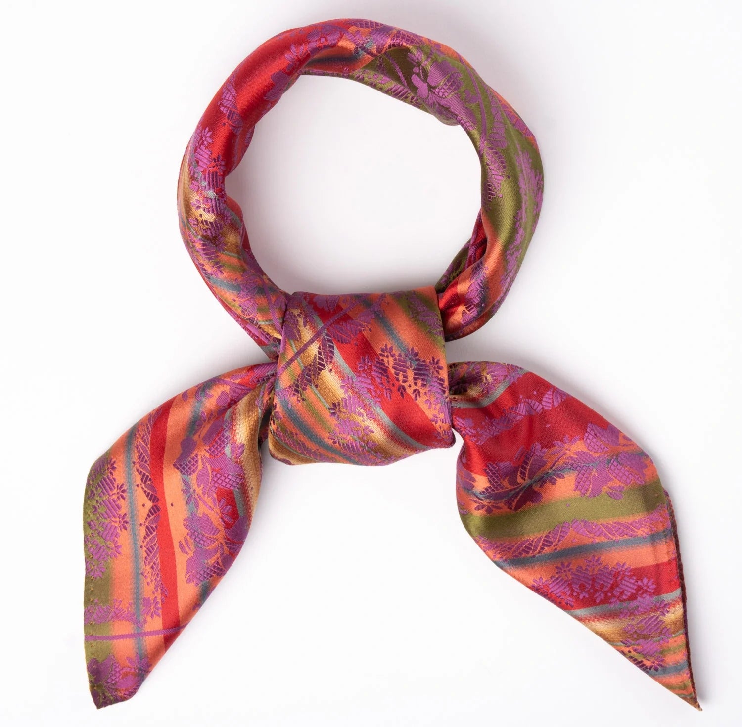 Silkeskjerf i flotte jacquard mønstre av den beste silke brukes til både dame- og herrebunadene fra Aust-Agder.